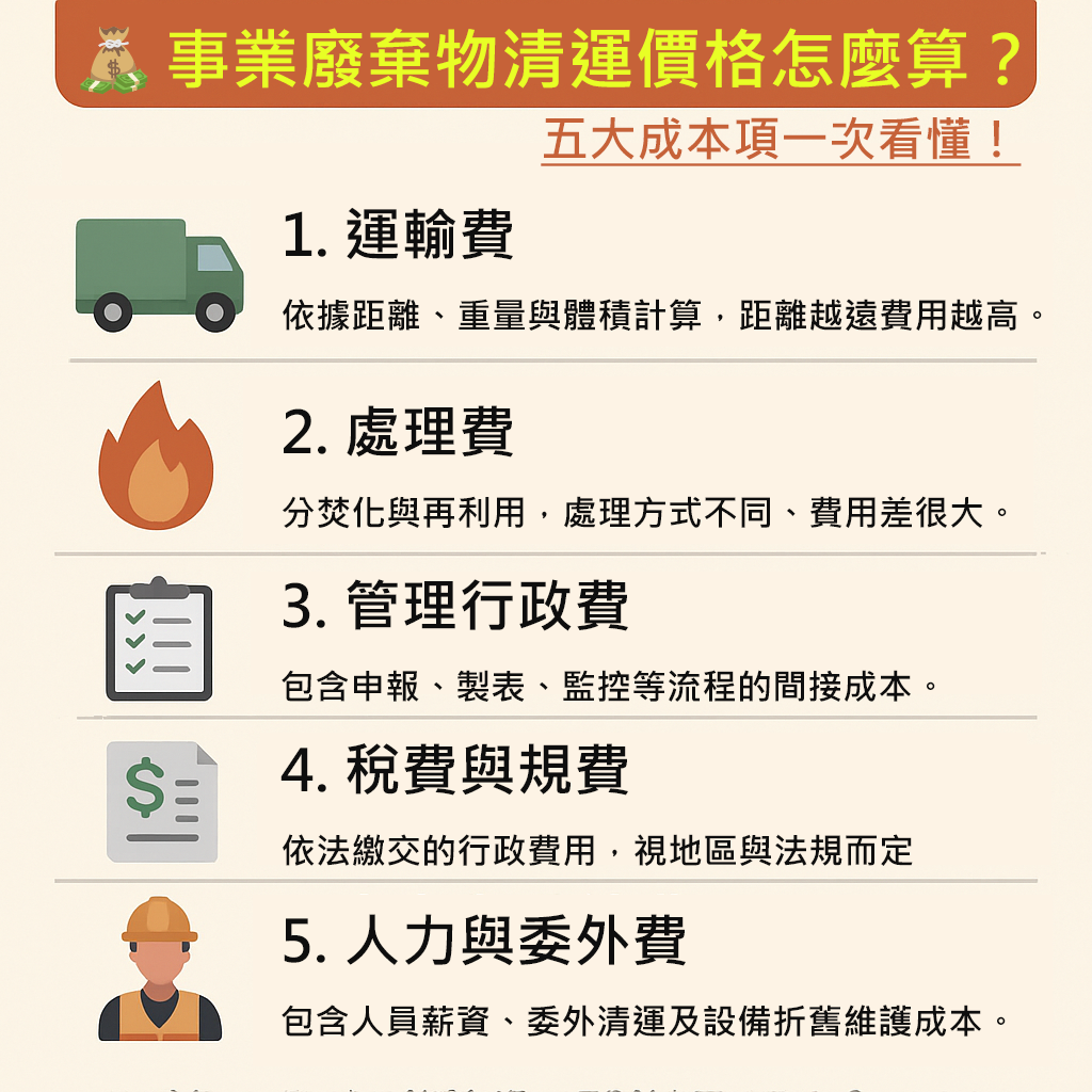 ? 五大事業廢棄物清運成本結構解析