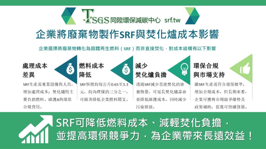 傳統焚化處理需要直接投入焚化爐,不僅增加維護壓力,也提高污染風險。而製作SRF雖然涉及分類、破碎、乾燥等程序,但這些費用在長期可分攤,還能搭配政府的轉型補助。