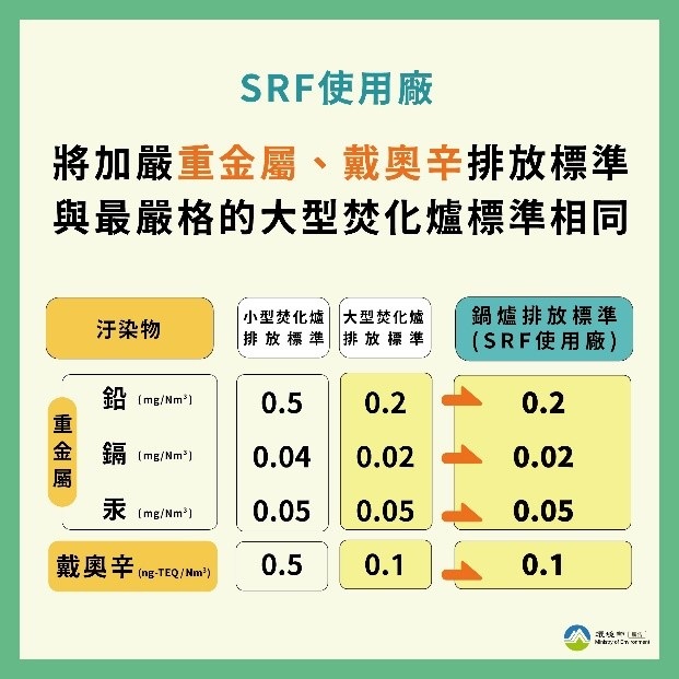 為確保空氣品質與人體健康,SRF的戴奧辛排放標準亦加嚴如下: